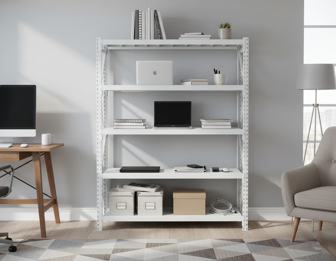 رفوف حديد متينة: تتحمل الأوزان الثقيلة ومقاومة للرطوبة.