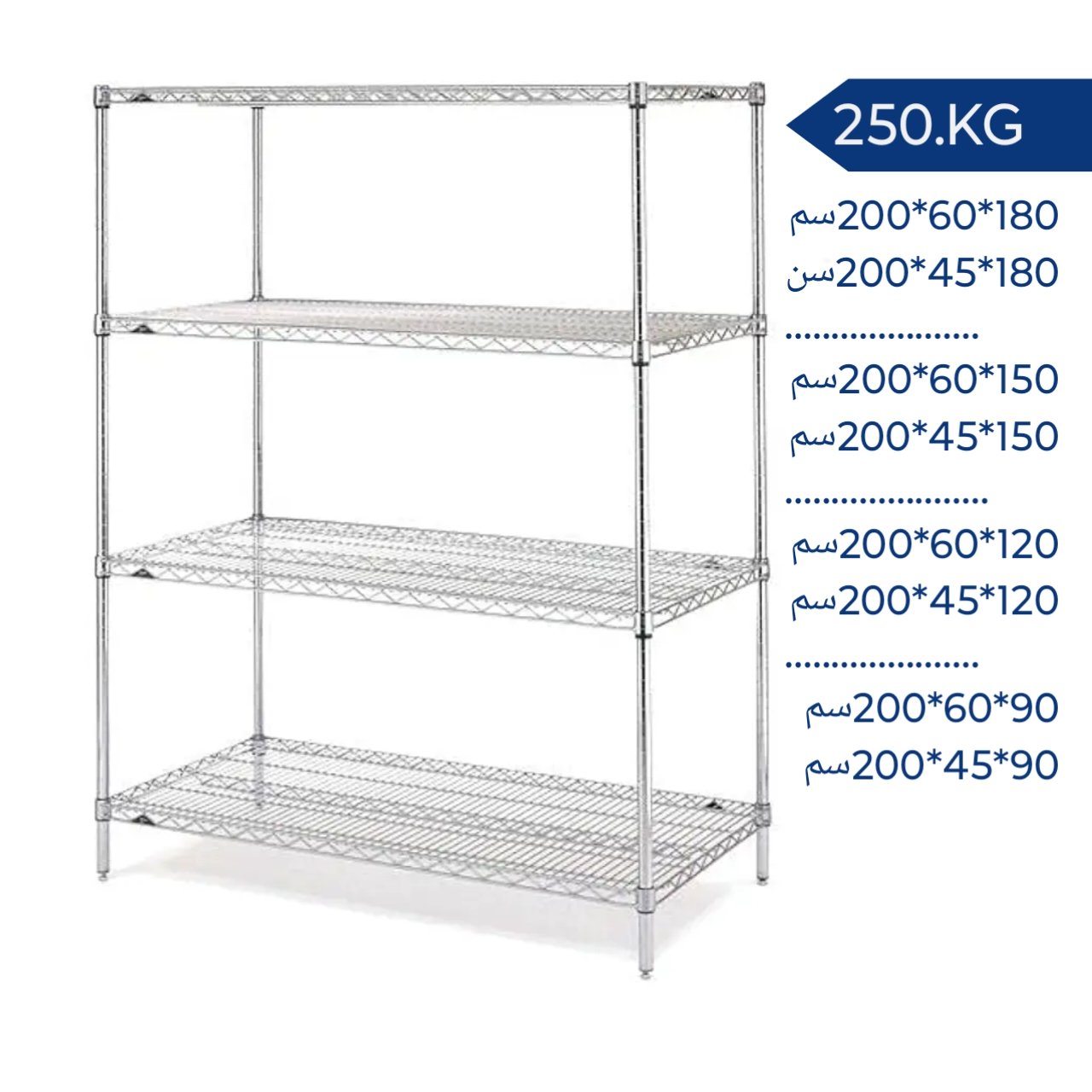 رفوف سلكية من الكروم التايواني، 4 رفوف، سعة 250 كجم لكل رف