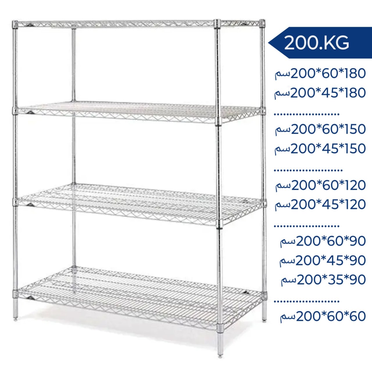 رفوف سلكية من الكروم التايواني، 4 رفوف، سعة 200 كجم لكل رف