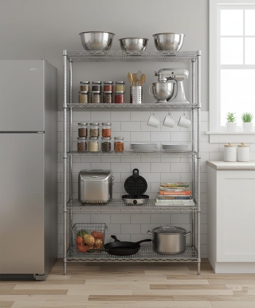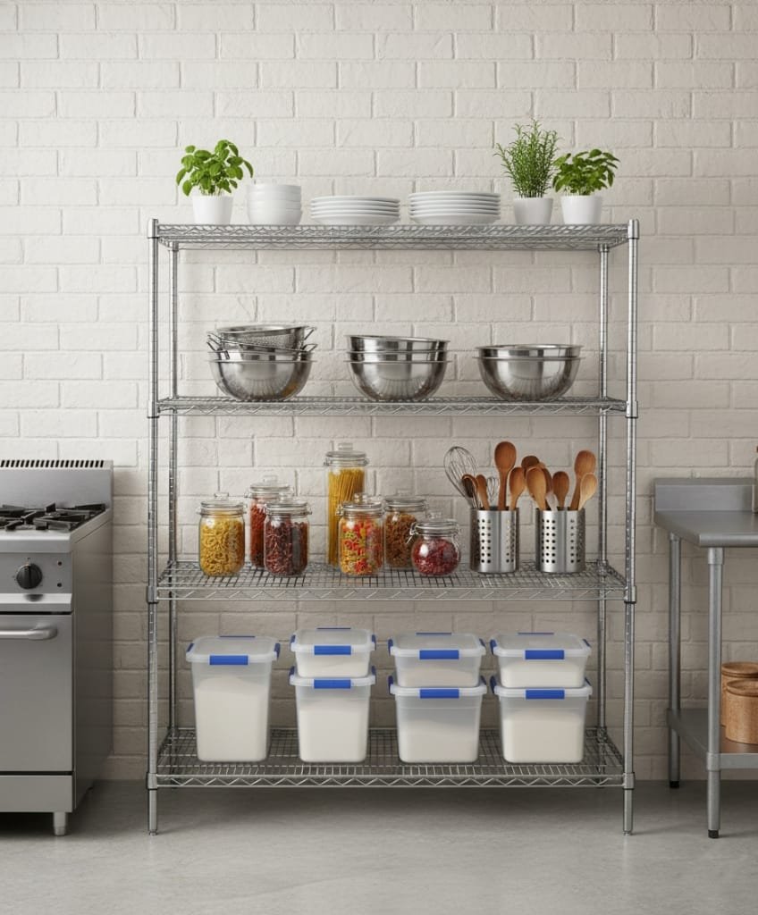 رفوف سلكية من الكروم التايواني، 4 رفوف، سعة 250 كجم لكل رف