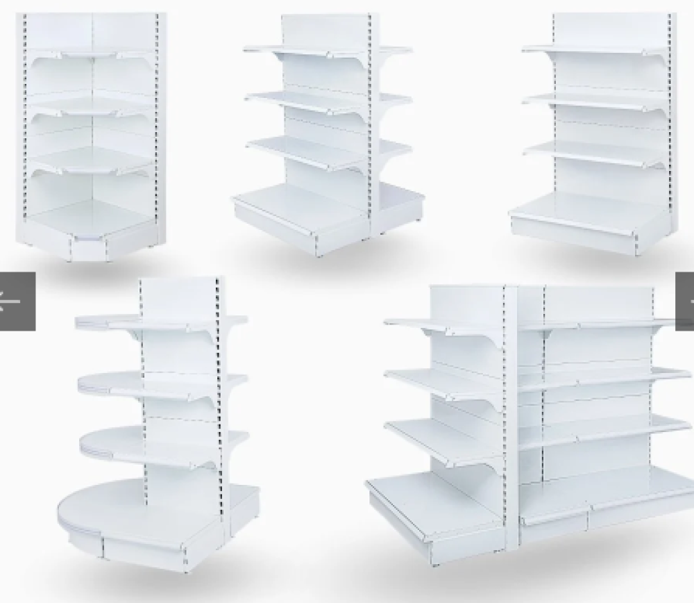 رفوف سوبرماركت نهاية مسار ابيض الارتفاع : 165 سم القاعده :45 سم الرفوف:40 سم