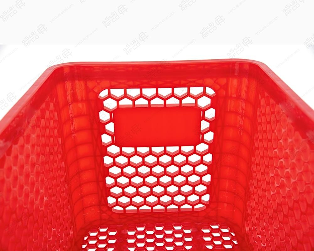 عربة تسوق بلاستيك احمر قاعدة حديد 160 لتر